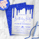 Chic Royal Blue Glitter Drips Silver Birthday Invitation