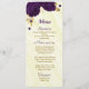 beautiful royal purple flowers and gold leaves elegant wedding menu.