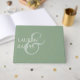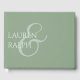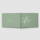 Chic and minimalist. This lovely wedding guestbook features couple monogram and text in ivory, against a chicsage green background.