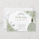 Chic Sage Green Floral Silver Quinceañera Princess RSVP Card