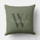 Enjoy two distinctive looks in trendy sage green and black on this elegant throw pillow. Reverse sides feature different designs. One has a 3D ironwork-look filigree of black over medium sage, and the reverse is the solid sage with your name and large monogram initial in lighter and darker shades of that popular color
