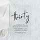 Elevate your 30th birthday party with this clear acrylic invitation featuring "thirty" in a chic script, your name in elegant serif typography and the party details in simple, modern lettering,