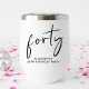 Elegant wine tumbler for your 40th birthday party featuring "forty" showcased in a chic script and your name in simple, modern lettering.