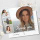 Say thank you in style with this postcard featuring 4 of your graduation photos accented with a chic hand-lettered looking script font that reads "Thank you" or change to your custom text. Add your name and graduation date to the front and type in your custom thank you note on the back. If you prefer to handwrite your note, just delete the text to make space for your message. Your guests will love seeing photos from your graduation/senior photos and receiving your thoughtful thank you note.