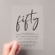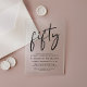 Elevate your 50th birthday party with this clear acrylic invitation featuring "fifty" in a chic script, your name in elegant serif typography and the party details in simple, modern lettering,