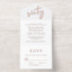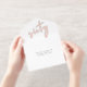 Elegant white 60th birthday party all-in-one invitation featuring "sixty" in a chic script, your name and "RSVP" in classic serif typography and the party details in simple lettering, all rendered in your choice of genuine gold, silver or rose gold foil. A tear-away RSVP postcard provides a convenient envelope-free response option for your guests.