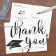 Custom graduation thank-you postcards personalized with the graduate's name and class year on the front along with a full-bleed over-sized THANK YOU title with a black and silver tassel graduation cap design. The opposite side offers the option to pre-print your thank-you message or opt to delete the sample text to leave the area blank for handwriting notes of appreciation. ASSISTANCE: For help with design modification or personalization, color change, transferring the design to another product or if you would like coordinating items, contact the designer BEFORE ORDERING via the Zazzle Chat MESSAGE tab below or email makeitaboutyoustore@gmail.com.