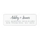 Simple, modern and chic wedding return address label with your names in off-black elegant handwritten script calligraphy on a white background. Simply add your names and address. Exclusively designed for you by Happy Dolphin Studio. If you need any help or matching products please contact us at happydolphinstudio@outlook.com. We're happy to help you make your wedding the most beautiful day!