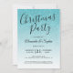 Chic Script Blue Glitter Ombre Christmas Party Invitation