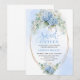 Chic Script Blue Hydrangea Gold Sweet Sixteen Invitation