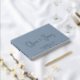 This minimal and elegant dusty blue wedding guest book features your choice of real gold, silver or rose gold foil, your first names in a chic modern script, and your wedding date and location in classic serif typography. You can personalize the title on the spine.