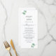 Elegant minimal wedding menu with off-black chic script and a stylish touch of green eucalyptus foliage on a white background. Simply add your wedding details. Exclusively designed for you by Happy Dolphin Studio. If you have any questions or requests, please contact us at happydolphinstudio@outlook.com. We're happy to help you make your wedding the most beautiful day!
