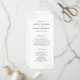 Elegant minimal wedding program features off-black chic script calligraphy and modern typography on a white background with a stylish touch of pale pink rose flower outline. Simply add your wedding program details. Exclusively designed for you by Happy Dolphin Studio. If you have any questions or requests, please contact us at happydolphinstudio@outlook.com. We're happy to help you make your wedding the most beautiful day!