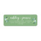 Chic, modern and simple wedding return address label with your names in white elegant handwritten script calligraphy with a stylish touch of green foliage on a green background. Simply add your names and address. Exclusively designed for you by Happy Dolphin Studio. If you need any help or matching products, please contact us at happydolphinstudio@outlook.com. We're happy to help you make your wedding the most beautiful day!