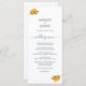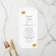 Elegant minimal wedding menu with off-black chic script and a stylish touch of gold leaf foliage on a white background. Simply add your wedding details. Exclusively designed for you by Happy Dolphin Studio. If you need any help or matching products, please contact us at happydolphinstudio@outlook.com. We're happy to help you make your wedding the most beautiful day!