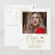 Chic Script Grad Announcement Festive Gold Glitter Postcard