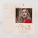 Chic Script Grad Announcement Rose Gold Glitter Postcard