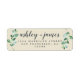 Chic, modern and simple wedding return address label with your names in off-black elegant hand written script calligraphy with a stylish touch of green eucalyptus foliage on an antique white background. Simply add your names and address. Exclusively designed for you by Happy Dolphin Studio. If you need any help or matching products, please contact us at happydolphinstudio@outlook.com. We're happy to help you make your wedding the most beautiful day!