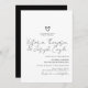 Chic Script Heart Slanted Black White Wedding Invitation