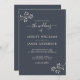 Chic Script Ivory Foliage Dark Blue Wedding Invitation
