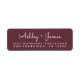 Chic, modern and simple wedding return address label with your names in white elegant handwritten script calligraphy on a burgundy background. Simply add your name and address. Exclusively designed for you by Happy Dolphin Studio. If you need any help or matching products please contact us through our store chat. We're happy to help you make your wedding the most beautiful day!