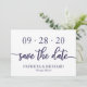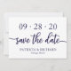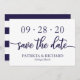 Chic Script Navy Blue White Wedding Save The Date Invitation