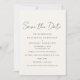 Chic light cream save the date wedding announcement featuring "Save the Date" in a minimal modern script and your personalized save the date details in simple typography. The reverse side features your photo overlayed with your first names and wedding date.