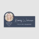 Chic Script Professional Blue Photo Name Tag