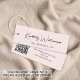 Elegant and stylish light pink clothing, accessories, jewelry, boutique, etc., hang tag with a minimalist vibe that features your name or brand in a chic signature script and additional text below if desired in simple modern lettering. On the back, add additional text and input a URL address to create a scannable QR code connected to your website, portfolio, social media profile, or any other platform that showcases your work and products, making it easy for customers to explore your brand. Please note that Zazzle does not punch the hole.