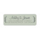 Chic, simple and modern wedding return address label features your names in off-black elegant handwritten script calligraphy and typography on a pastel green background with a stylish touch of rustic foliage. Simply add your names and address to the rsvp sticker. Exclusively designed for you by Happy Dolphin Studio. If you need any help or matching products please contact us at happydolphinstudio@outlook.com. We're happy to help you make your wedding the most beautiful day!