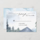 Chic Script Slate Blue Mountains Forest Wedding RSVP Card
