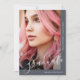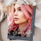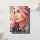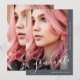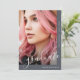 This beautiful graduation announcement features pretty light gray graduate script on a slate blue background, and two photos.