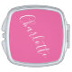 Chic Script Typography Personalized Compact Mirror in Hot Pink