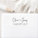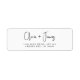 Modern return address label for your engagement announcements, save the dates, wedding invitations, thank you cards and newlywed correspondence featuring your first names in a chic script and your address in classic serif typography.