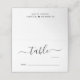 Chic wedding table number place cards with "table" in an elegant modern script with swashes and blank lines for you to fill in the table numbers and guests' names. On the back, add your first names joined by a heart and your reception date.