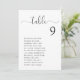 Chic wedding table seating chart card featuring "table" in a stylish script with swashes, the table number in elegant serif typography and your guests' names in simple modern typography. Create each table seating chart individually and add to your shopping cart one at a time, then check out once all tables are in your cart.