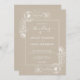 Elegant wedding invitation with a stylish delicate white floral outline on a shiitake gray background featuring chic handwritten script calligraphy and modern typography. Simply add your names and wedding details. Exclusively designed for you by Happy Dolphin Studio. If you need any help or matching products, please contact us happydolphinstudio@outlook.com. We're happy to help you make your wedding the most beautiful day!