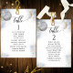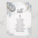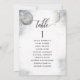 Help your guests find their table with this elegant silver and gold moons and stars celestial seating plan cards with guests names. Double sided cards so guests can look from both, front or back for their names. Clear space all around giving you the liberty to use clips or punch hole for hanging displays, or use table holder/frame. Delicate watercolor celestial background with dainty gold and white stars and full moon on one side and a quarter moon on the other. Modern hand written calligraphy details. Several color options. Have all table numbers in same color or mix colors according to your event's color theme. Please place one order for each of your table seating cards, add into your shopping cart and then return to add new names and new table number. Repeat the process until all your table numbers are done. Part of our "White, Gold and Silver Celestial Stars and Moon" collection with a variety of coordinating products available. Visit the entire collection at: https://www.zazzle.com/collections/gold_white_and_silver_celestial_stars_and_moon-119446192561160871