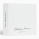 Chic white binder with a minimalist vibe for your personal or business use featuring your name or brand in a stylish signature script and your additional text below and on the spine in simple modern lettering.