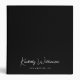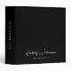 Chic black binder with a minimalist vibe for your personal or professional business use featuring your name or brand showcased in a stylish white signature script and your text below and on the spine in simple white lettering.