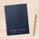 Chic blue notebook with a minimalist vibe for your personal or professional business use featuring your name or brand showcased in a stylish white signature script. Add additional text below in simple modern white lettering.