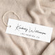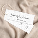 Elegant and chic custom clothing, accessories, jewelry, boutique, etc., white price hang tag with a minimalist vibe featuring your name or brand in a stylish signature script. Add additional text below in simple modern typography. On the back, you can customize the size and price templates by editing in the design tool. Please note that Zazzle does not punch the hole.