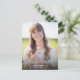 This elegant graduation postcard features pretty silver calligraphy and a large photo. The silver script lettering along the bottom reads "Graduate" in lowercase letters decorated with elegant flourishes. Add the graduate's name and graduation year to the front below the typography design. On the back of the grad postcard you can add a message to recipients and/or graduation party information.
