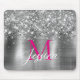 Chic Silver Foil Faux Glitter Hot Pink Monogram Mouse Pad