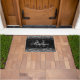 Stylish Silver Glitter Black and White Monogram doormat with a customizable calligraphy script name and bold monogram template. A chic, girly personalized doormat for your new home or dorm room.