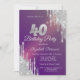 Chic Silver Glitter Drips Purple 40th Birthday Invitation