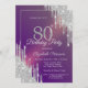 Chic Silver Glitter Drips Purple 80th Birthday Invitation