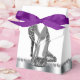 Beautiful black and silver glitter high heel shoe party favor boxes. These elegant black and silver glitter high heel shoe favor boxes can be customized with text and you can change the background color and bow color.