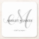Chic Silver M Monogram Script Name Wedding Date Square Paper Coaster