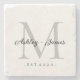 Chic Silver Monogram Script Names Wedding Date Stone Coaster